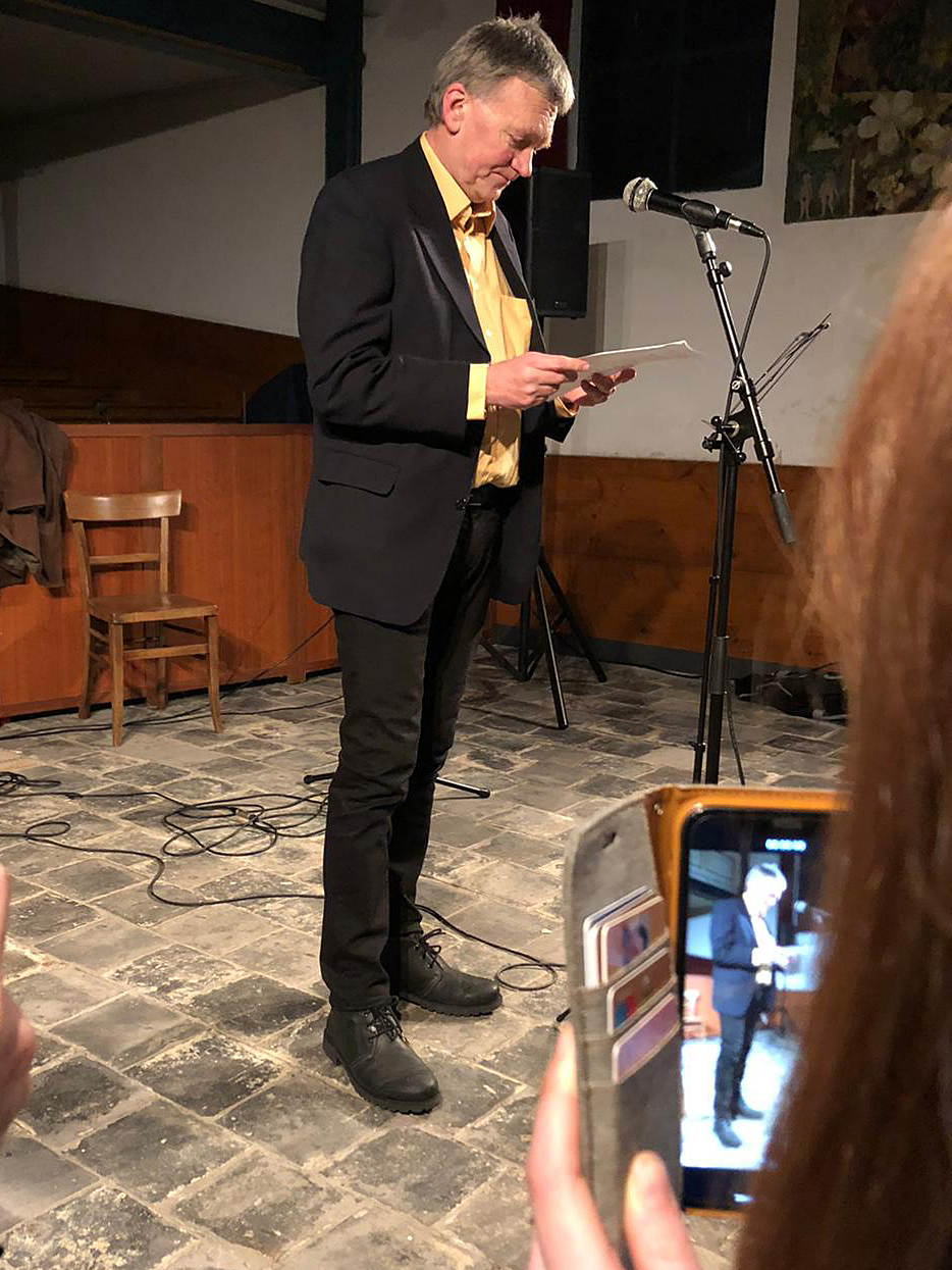 de woorden, de lach vervaagd, holle